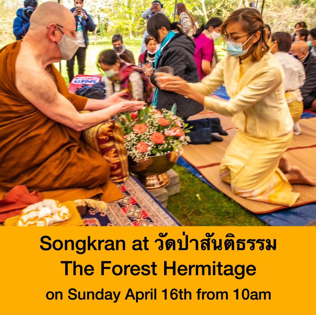 Songkran Celebration on Sunday 16th April Posted on April 6, 2023 by antonyharfield Join us at The Forest Hermitage next Sunday 16th April from 10am to celebrate Songkran (Thai New Year). Related